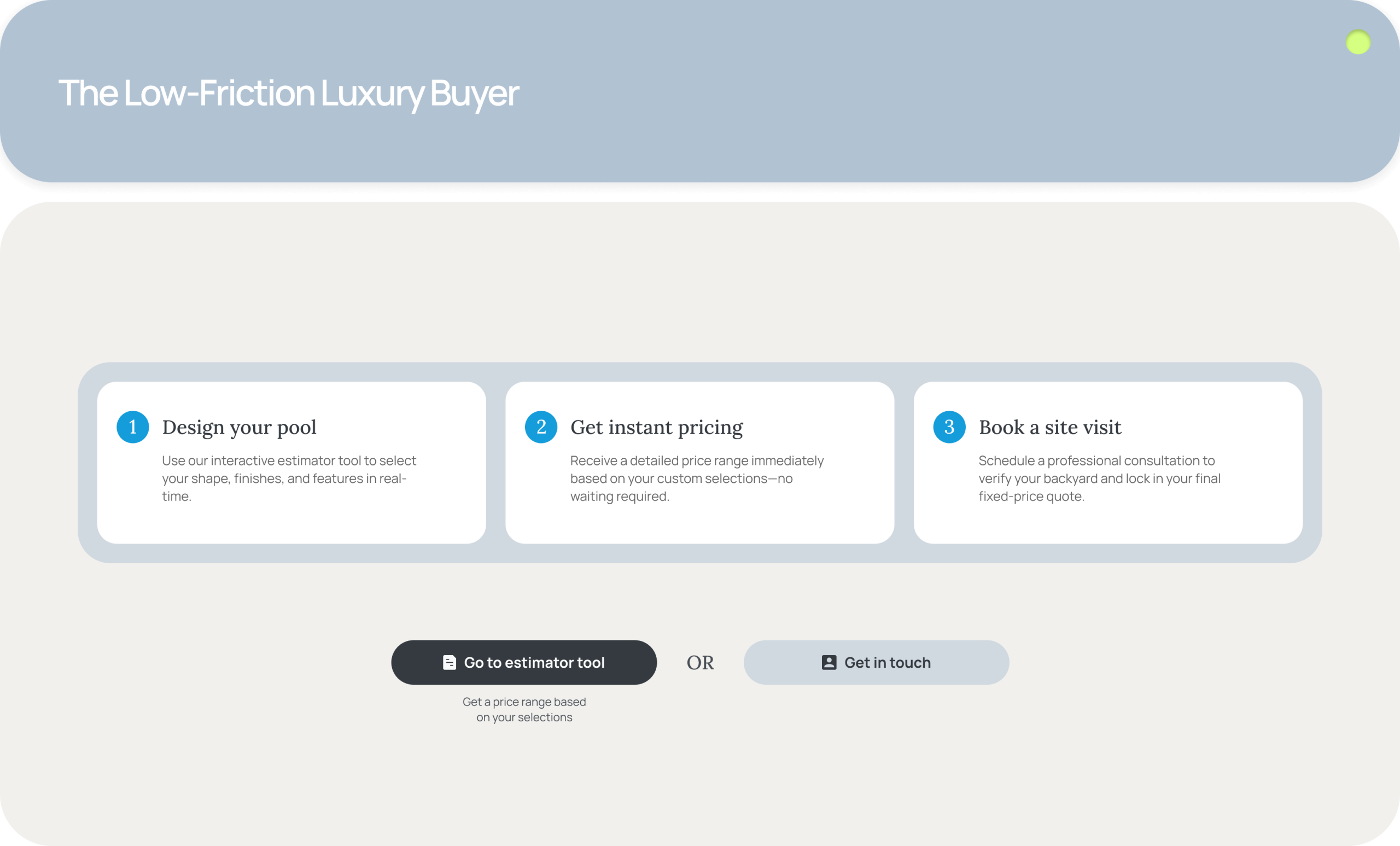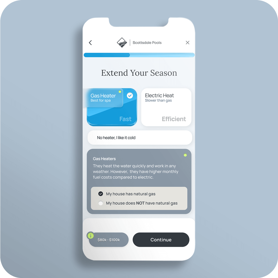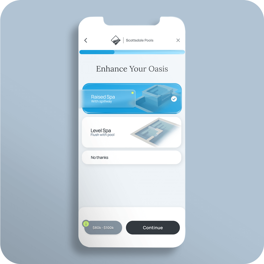 Scottsdale Pools, a high-end custom pool builder in Arizona, faced a dual challenge: their sales team was overwhelmed by unqualified leads, while prospective customers were frustrated by the lack of pricing transparency on the website.